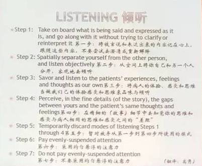 支持性倾听第三步:将病人的体验、感受思维当做如同我们自己一样来品位与倾听。