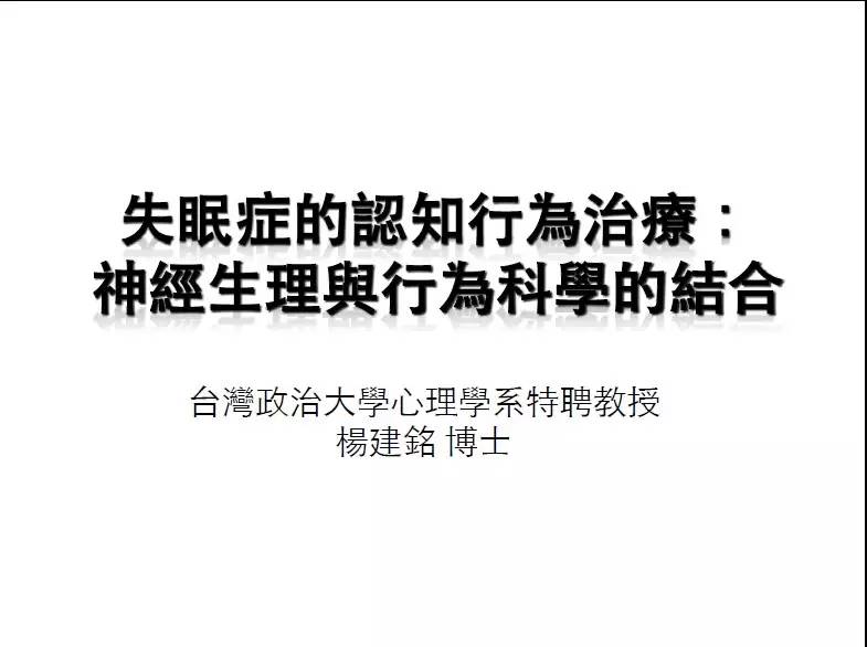 杨建铭同济大学讲座:失眠认知行为治疗(精华 admin 2019-04-09 15 www.nmgpsy.com内蒙古心理网` J0xQw0学空间.S2Jnq5l5Sw内蒙古心理网;}/n[b D+W主持人姚玉红副教授: