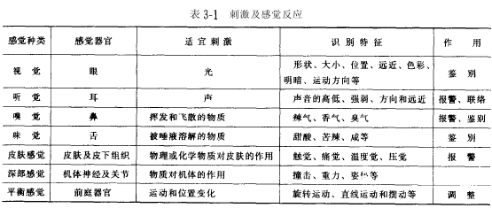 机体生活在不断变化的外部的条件中,受到各种外界因素的作用,其中能被肌体感受的外界变化叫做刺激。每种感受器官都有其对刺激的最敏感的能量形式,这种刺激称为该感受器的适宜刺激。当适宜刺激作用于该感受器,只需很小的刺激能量就能引起感受器兴奋。对于非适宜刺激则需要较大的刺激能量。人体主要感觉器官的适宜刺激及感觉反应见
