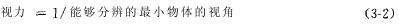 (1)空间辨别。视觉的基本功能是辨别外界物体。根据视觉的工作特点,可以把视觉能力分为察觉和分辨。察觉是看出对象的存在;分辨是区分对象的细节,分辨能力也叫视敏度。二者要求不同的视觉能力。