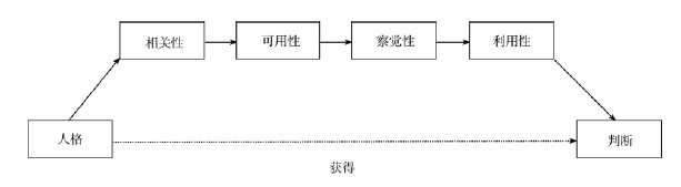 关于影响因素,根据Funder(1995,1999,2012)的现实准确性模型(realistic accuracy model,简称RAM),准确的人格判断必须经历四个阶段:第一,判断目标必须表现出相关(relevance)行为,即行为可以为相关特质提供信息;第二,这一信息对判断者必须是可用的(availability);第三,判断者必须能够察觉(detection)这一信息;最后,判断者必须正确利用(utilization)这一信息(如图1)。当且仅当相关的行为信息是可用的且被判断者察觉时以及判断者能够正确利用这些信息时才能获得准确的人格判断。Funder还指出,一个完整、准确的人格判断至少要考虑四个因素,他称之为四个主要“调节变量”:良好的目标(good target,即目标的可判断性)、良好的特质(good trait,即特质的特性)、良好的信息(good information,即信息的数量和质量)以及良好的判断者(good judge,即判断者的能力),它们通过影响RAM的一个或多个阶段来影响人格判断的准确性。