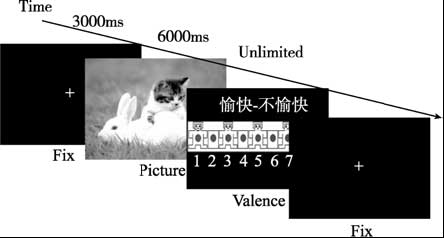 被试对图片的情绪效价评分由E-prime 软件自动记录, α 波数据则由HXD-I 脑电采集器采集, 所有数据导出后由SPSS 12.0 统计。