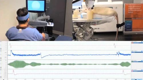 人类志愿者看电脑屏幕上的频闪光时,脑电波就会同步与频闪的频率保持一致。但是当他们把注意力转移到正在摆动的老鼠的尾巴上时,注意力的变化对脑电图产生干扰,导致信号被发送到电脑上。电脑把该信号翻译成超声波脉冲,刺激老鼠的运动皮质,促使它的尾巴运动起来。利用这个系统,6名志愿者全部都能毫不费力地促使老鼠的尾巴运动起来,该系统的精确度高达94%。柳承世教授说,在可以预见的将来,两个人可能会采用类似系统控制对方的运动。