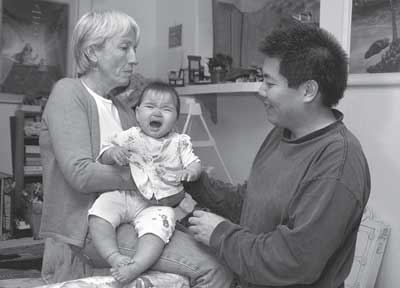 当lilly的父亲把她递给保姆的时候,lilly在表达她的戒心。她反抗的紧张程度反映了交给陌生人照顾的不适。