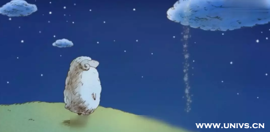 后来这件毛衣被风吹到了云端,在天堂的小羊,收到来自妈妈的礼物,开心地蹦跶起来。
