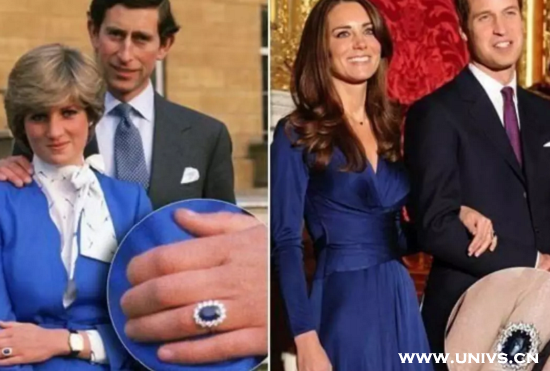 他和凯特王妃订婚的时候,凯特王妃手上佩戴的那枚蓝宝石戒指,正是当年黛安娜王妃佩戴的。