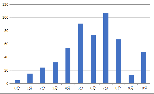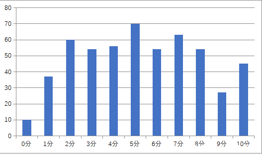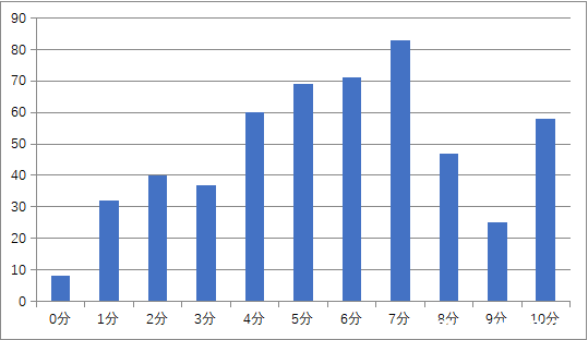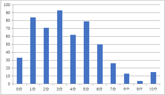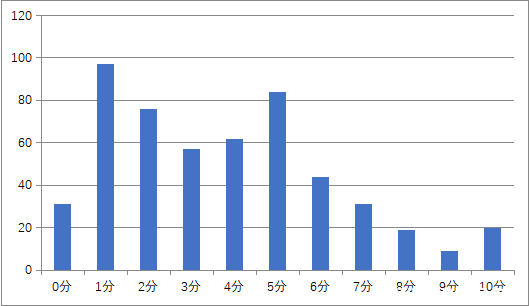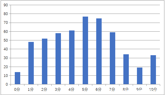 根据评分标准(1)我们计算出参与调研的同学发展压力的平均值为:6.622,表示从整体来看,我们的同学发展压力偏重,甚至干扰到日常学习生活。