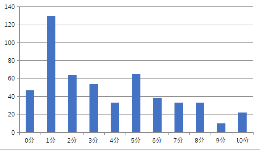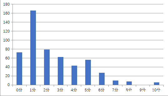 可看出大学生来自家庭的压力很少,对大多数大学生本身没有产生影响。但有极少数学生打分10分满分,在日常心理监控中,应对此个别家庭压力大的学生进行引导。