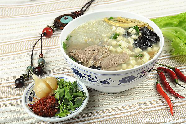西安的羊肉泡馍也是西安学子记忆里浓墨重彩的一笔。汤味浓香扑鼻,料重味醇,肉烂汤浓,肥而不腻。