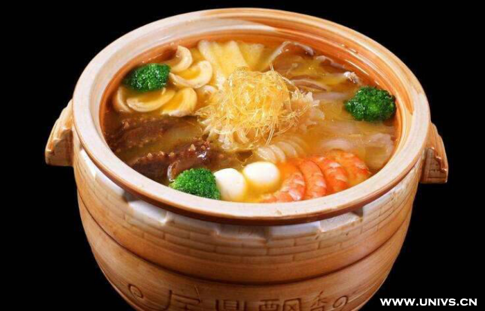 由鲍鱼、海参、鱼唇、牦牛皮胶、杏鲍菇、蹄筋、花菇、墨鱼、瑶柱、鹌鹑蛋等食材制成的佛跳墙想必早就闻名天下。每一种食材的口味和特点都得到了充分体现。在武汉的闽南学子可能只有回家后才能吃到再饱口福了。