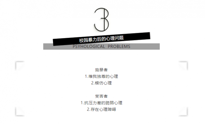 (3)有问题早发现、早解决,千万不要因为心理问题无法疏解便用极端方法处理问题,发生校园暴力等问题。