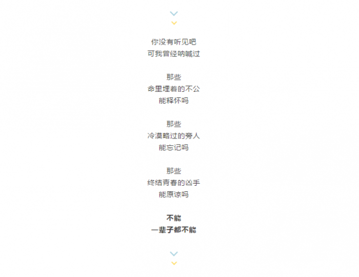 生而为人,总有不如意的地方,别在墙要倒的时候推墙一把了。世界宽广辽阔,也可以借我小小角落,借我光和火。