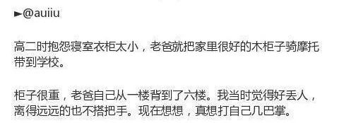 助手君发现,除了行为上向爸爸妈妈靠拢,思想也在慢慢读懂他们,曾经的那些不理解也不曾留意的爱都逐渐明了,然后珍惜。