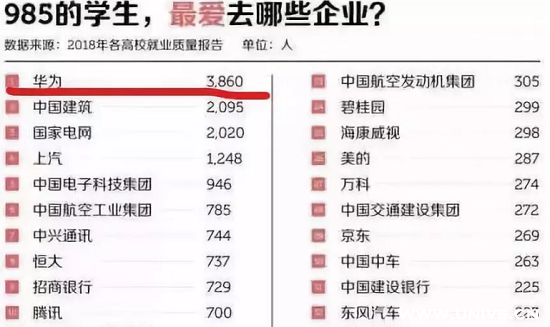 数据显示,985的毕业生,首选的企业是华为。
