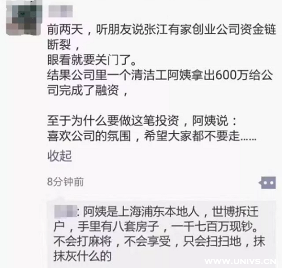 某创业公司因为资金链断裂面临倒闭,危难时刻,公司里扫地的阿姨拿来了600万融资。