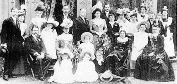 (温尼科特的爸爸、妈妈站在最左端,左边第五位是他的姐姐维奥莱特,前排最左边的女孩是他的另一位姐姐凯瑟琳。照片正中间的宝宝就是温尼科特)