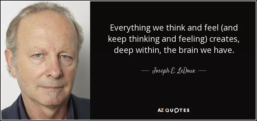 早期观察是LeDoux现在相信我们为什么经历恐惧和焦虑等情绪的基础。在面对危险的时候,大脑就会进入防御模式,监测威胁比我们意识觉知的运作更快,与此同时,大批命令被发送到大脑和身体的么一个角落,以便让所有的系统准备采取行动。只有这一过程开始之后,恐惧和焦虑情绪才会上升到意识——而且仅当如此,LeDoux 说,“你有一个能意识到它自己活动的大脑”,一个“在语言上加以标记,并将其与思想和结合起来,能够对所有这些进行概念化的”大脑。换句话说,恐惧和焦虑,作为我们对周围世界基本反应,并没有直接连接大脑——更确切的说,是这些反应让他们与大脑相连,当大脑将这些反应解释为恐惧时,恐惧和焦虑就会融合成恐惧。